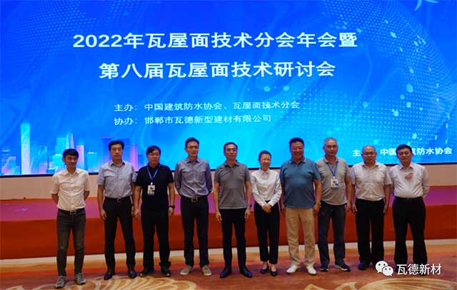 7月27日,由瓦德新材協(xié)辦,作為2022第三屆防水行業(yè)大會平行論壇的2022年第八屆瓦屋面技術與市場研討會,在南京白金漢爵大酒店召開。瓦德新材董事長謝富強帶隊參加。