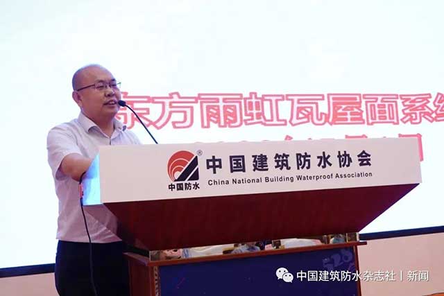中國建筑防水協(xié)會瓦屋面技術分會輪值會長、邯鄲市瓦德新型建材有限公司董事長謝富強代表協(xié)辦單位致辭。
