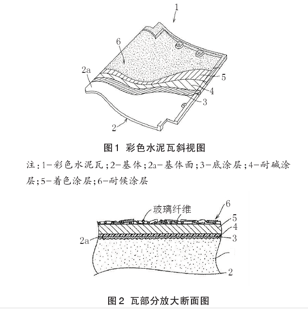由上可知,由于在瓦基體面的著色涂層上再涂有含玻璃纖維的耐候性涂料,當(dāng)日光紫外線接觸玻璃纖維,出現(xiàn)漫反射,阻止了日光射入著色涂層,有效保護(hù)著色涂層不受紫外線的影響,使著色涂層難以老化和褪色變色。涂層中的玻璃纖維還保護(hù)各涂層和瓦基體不受風(fēng)雨的損害,延長(zhǎng)瓦的使用壽命,瓦可以長(zhǎng)久保持強(qiáng)度和美觀??傊瑤秃蛲繉拥牟噬嗤吣荛L(zhǎng)期經(jīng)受惡劣的使用環(huán)境,不需要反復(fù)維修涂覆,商品價(jià)值得到提高。